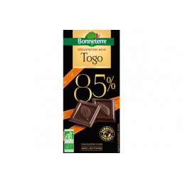 Chocolat à haut % de cacao avec grande richesse aromatique et intensité sans défauts grâce à la qualité de l’origine Togo du cacao. Fabrication traditionnelle suisse avec un conchage long qui élimine les acidités et rend le chocolat très onctueux sans besoin de lécithines