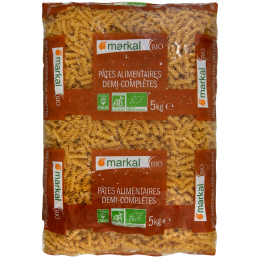 Pâtes traditionnelles de Sicile à la semoule de blé dur bio, spirales demi complètes, en sachet de 5kg.